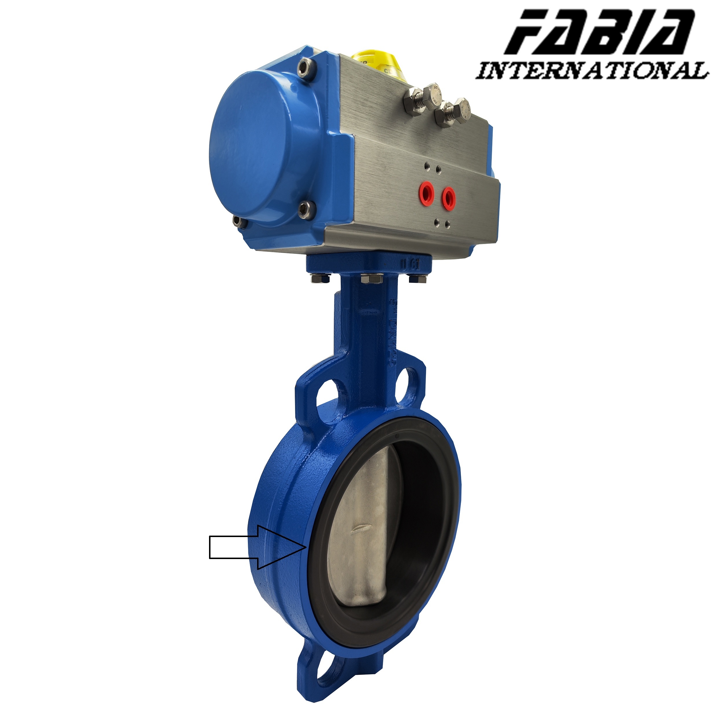 Pneumatische vlinderklep is een roterende klep die wordt bediend door een pneumatische aandrijver.